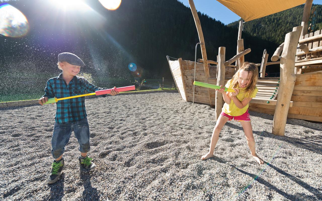 Das Badeareal bietet eine großzügiger Liegewiese und Erlebnisspielplatz mit Piratenschiff für die Kinder. Ein Kiosk und ein Restaurant stehen zur Verfügung.