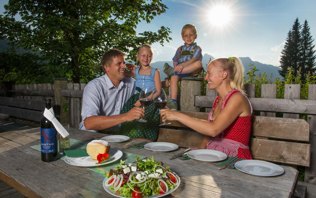 Die Almhütte ist während der Sommermonate bewirtschaftet und bietet eine schöne Sonnenterrasse und einen Kinderspielplatz.