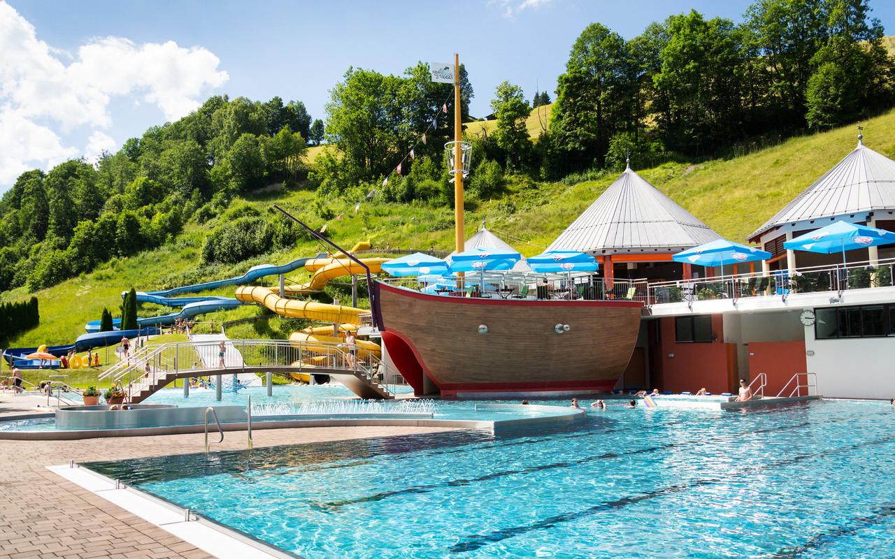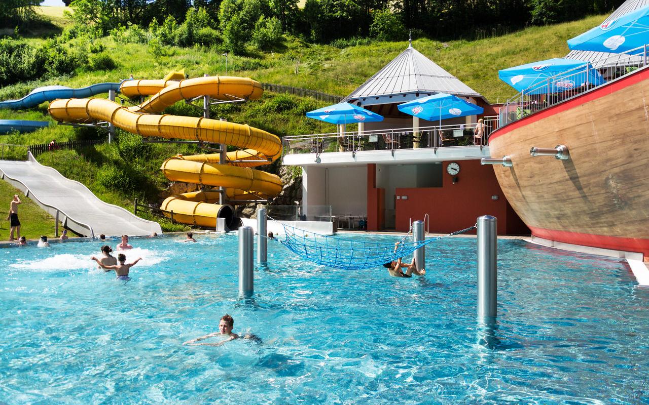Auf 1.000 m² Wasserfläche werden viele Attraktionen geboten, die den Badetag zu etwas ganz Besonderem machen.
