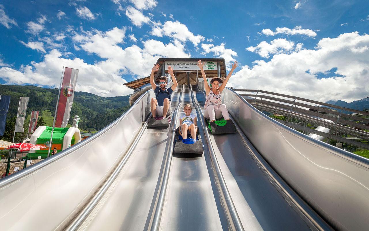 Die täglich geöffnete Alpen-Achterbahn Alpin Coast Maisflitzer iist ein heißer Tipp für spannende Familienabenteuer und lässt sie mit einer Geschwindigkeit von bis zu 40 km/h ins Tal sausen. Dabei sorgen eingebaute Wellen, Jumps und 5 Kreisel für Adrenalin pur, während die Strecke am höchsten Punkt 11 Meter über dem Boden schwebt.