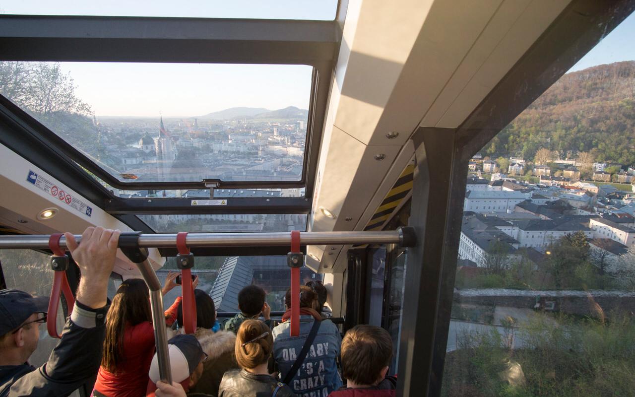 1,7 Mio. Fahrgäste genießen jährlich die Fahrt mit der Festungsbahn und blicken während der 54 Sekunden langen Fahrt durch das große Panoramafenster auf die Stadt Salzburg. Wurde die FestungsBahn anno dazumal noch mit Wasserkraft betrieben, handelt es sich heute um eine moderne Bahnanlage mit bestem Komfort und Sicherheit.
