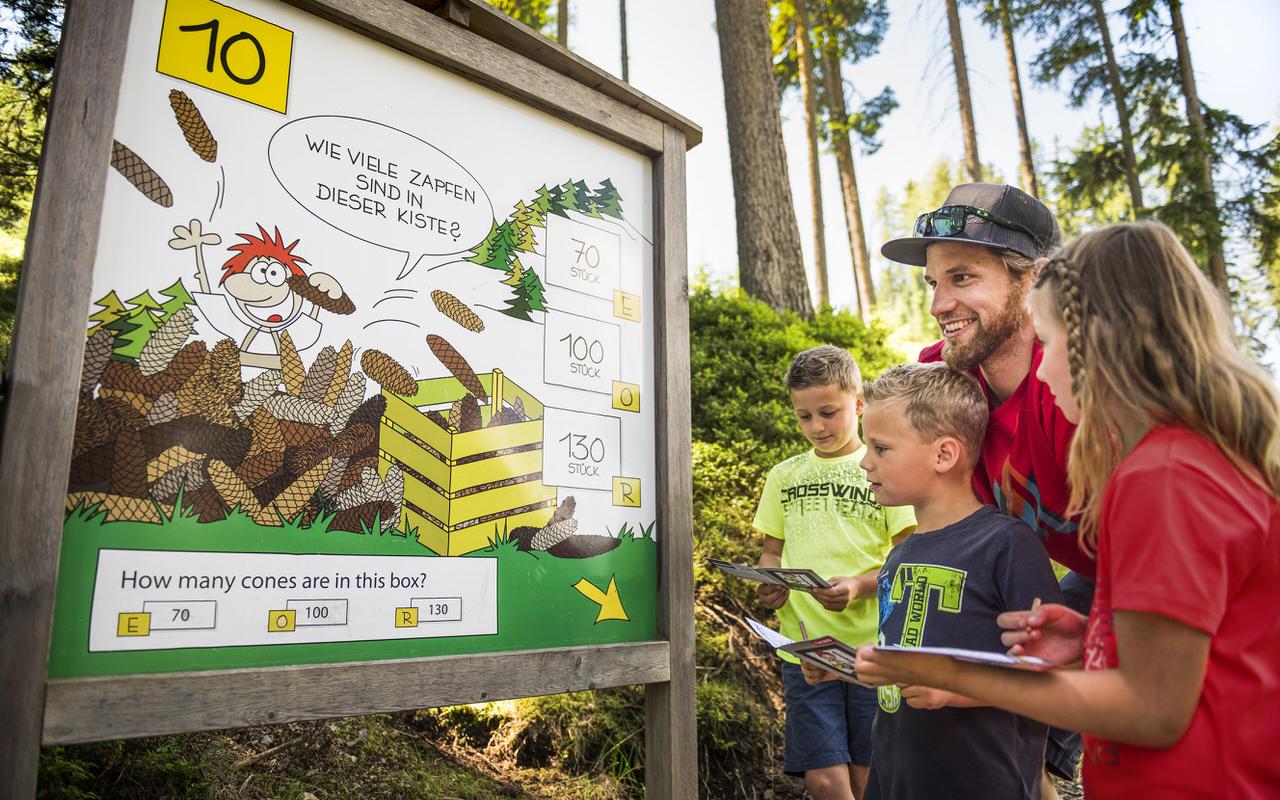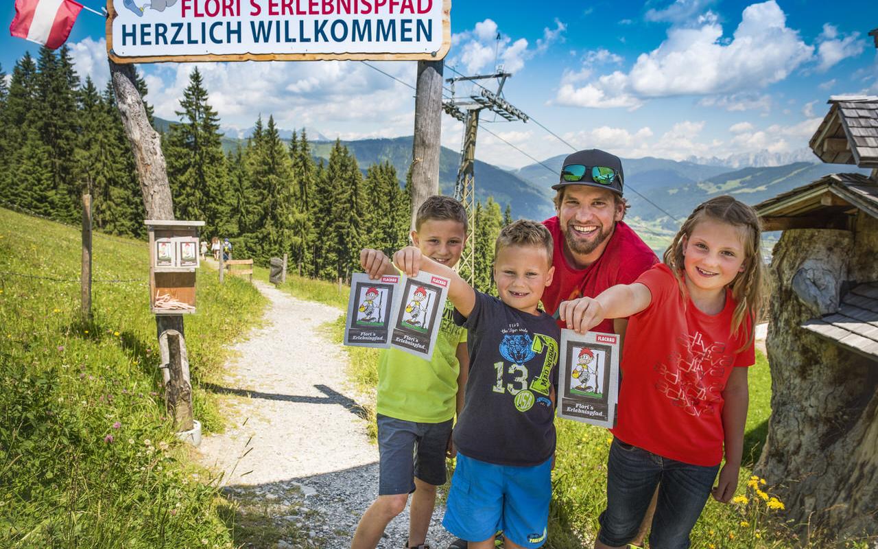 Kinderwagentauglicher Familienwanderweg am Grießenkar in Flachau. Die Wandertour beginnt direkt an der Bergstation des Starjet 1 und beträgt eine Gehzeit von 1,5 - 2 Stunden. Auf dem Pfad sind viele Schautafeln mit Rätseln und Spielstationen.