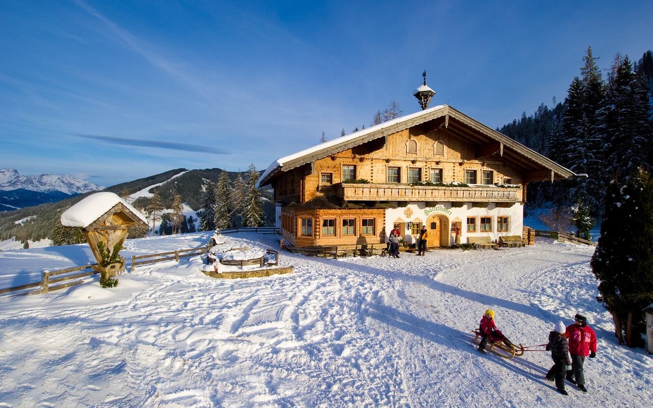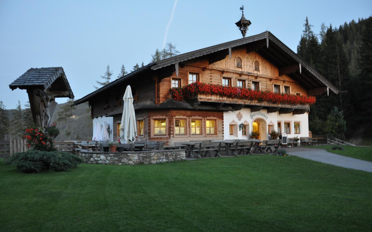 Der Berggasthof Sattelbauer bietet einen wunderschönen Ausblick auf die umliegenden Berge, Grießenkar, Bischofsmütze und Dachstein.