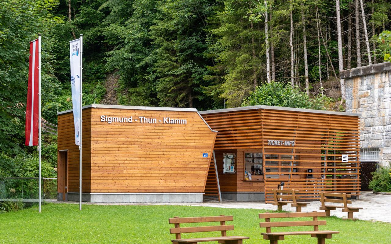 Sigmund-Thun-Klamm in Kaprun gilt als eine der schönsten Klammen des Landes Salzburg mit tosenden Fluten mit einer Länge von 320 m und einer maximalen Tiefe von 32 m. Über eine 340 m lange Holzstegkonstruktion können die Besucher diesen außergewöhnlichen Taleinschnitt mit den markanten Glättungen und den typischen Strudeltöpfen und Kolken besichtigen. Durch die Klamm-Maut beteiligen sich die Besucher an der Wartung und Instandhaltung der Steganlagen.