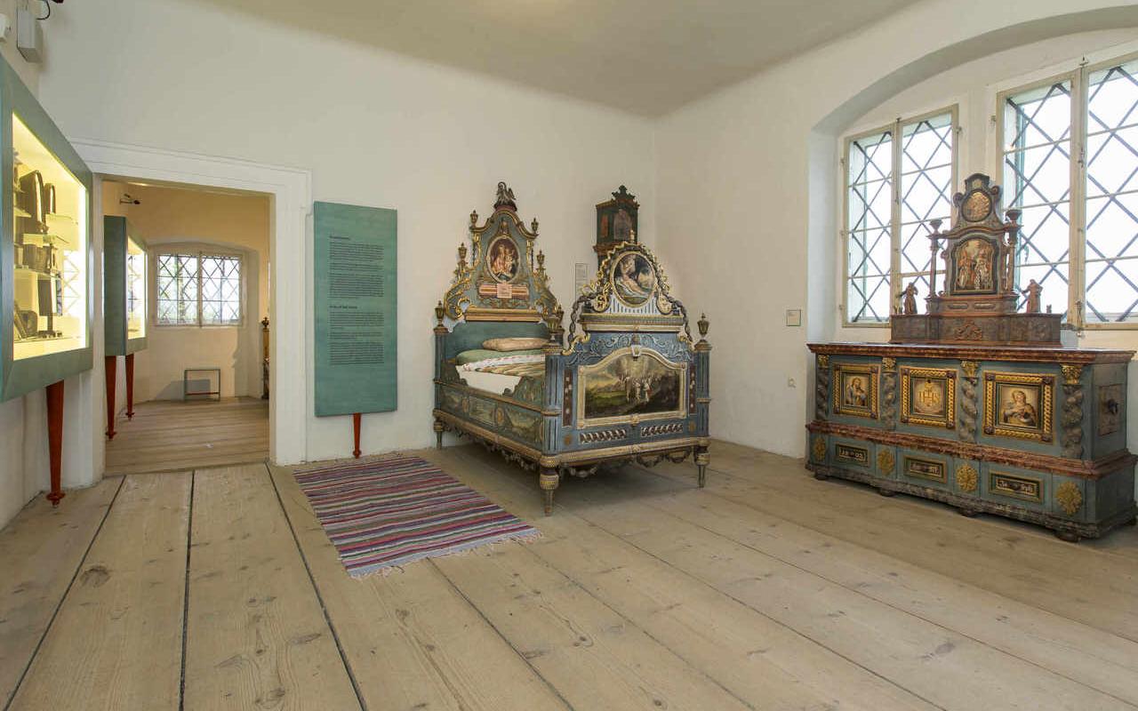 Die Dauerausstellung präsentiert eine reiche Fundgrube ausgewählter Objekte, die von rustikalen Zeremonialmöbeln über farbenfrohe Trachten der Region bis hin zu historischen Perchten und Showmasken reichen.
