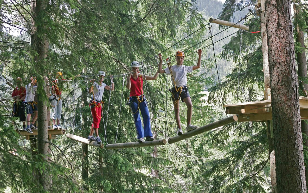 Eingebettet zwischen hohen Fichten erstrecken sich 7 verschiedene Hochseilgarten-Parcours. In einer Höhe von 2 bis 15 Metern müssen verschiedene Hindernisse überwunden werden. Während an vielen Stellen noch an jeder Station aufwändige Aus- und Einhakvorgänge durchgeführt werden müssen, kommt im Hochseilgarten Rittisberg ein völlig neues Sicherheitssystem zum Einsatz: ein Einhaken genügt und man ist während des gesamten Parcours immer sicher.