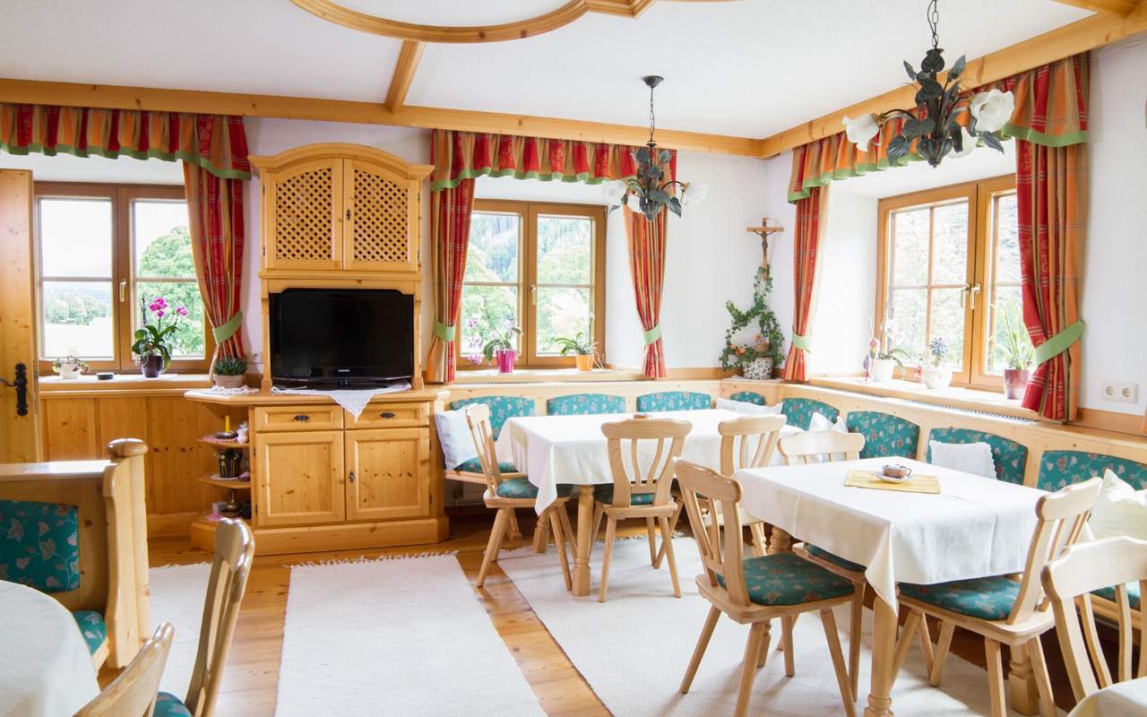 Die Zimmer sind im ländlichen Stil mit Vollholzmöbeln eingerichtet und verfügen über Dusche/WC, Sat-TV sowie teilweise über einen Balkon mit Bergblick. Natürliche Materialien sorgen für ein angenehmes Raumklima, was besonders für Allergiker von Vorteil ist.