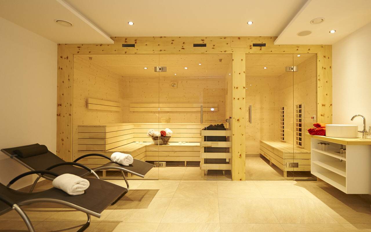 Im neu gestalteten kleinen Wellnessbereich steht den Gästen eine Zirbensauna, Infrarotkabine und Entspannungsliegen zur Verfügung.