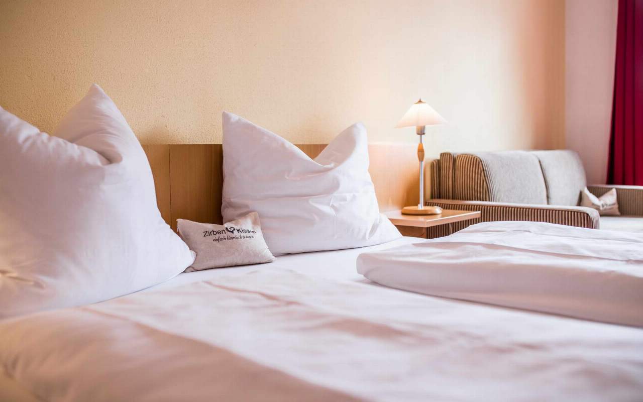 Das Hotel bietet gemütliche Doppelzimmer, ideal für Paare oder kleine Familien, und Familienzimmer mit getrennten Schlafzimmern, besonders geeignet für einen Urlaub mit Freunden oder mehreren Kindern.