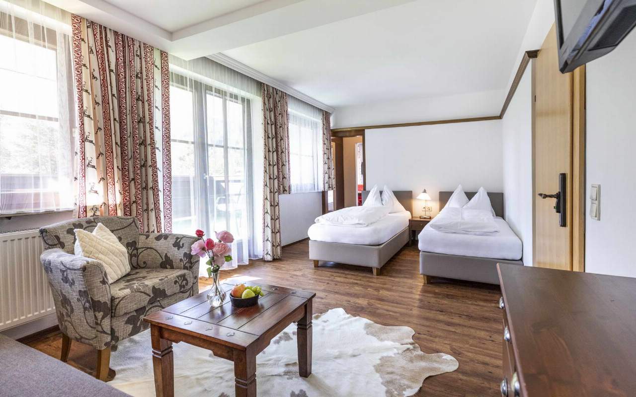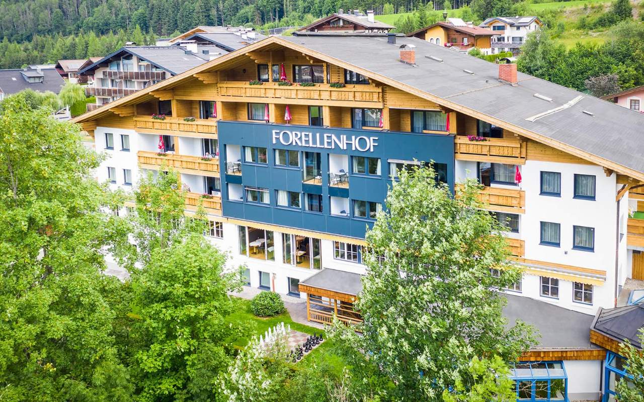 Sonnig und zentral liegt das Hotel Forellenhof in erhöhter Position mit traumhaftem Panoramablick in Flachau. Ideal für Urlaub zu zweit, mit Freunden und mit der ganzen Familie. Die angebotenen Räumlichkeiten umfassen Zimmer, Familienzimmer und Suiten. Alle stilvoll und komfortabel gestaltet mit wunderschönem Blick auf die "Hermann Maier Weltcupstrecke" und den Hausberg Lackenkogel. Dem 4 Sterne Hotel angeschlossen ist eine exklusive Ferienwohnung im alpinen Lodge Stil mit 5 Schlafzimmer und 4 Bädern.