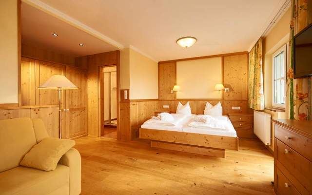 Die Zimmer sind im Stil der Region mit heimischen Hölzern und warmen Farben gestaltet und bieten Urlaubsgenuss für Singles, Paare oder Familien.