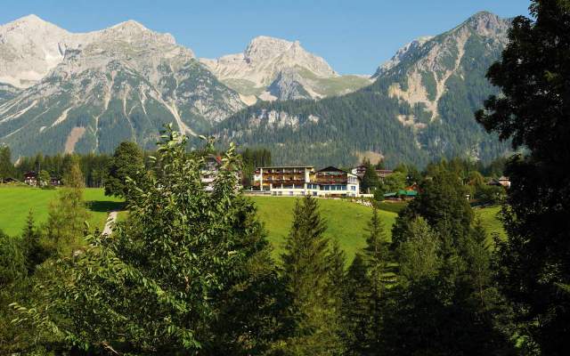Das Hotel Martin ist umgeben von der beeindruckenden Bergwelt des Dachsteins und der Schladminger Tauern. Durch jedes Fenster grüßt eine Bergspitze, ein unvergleichlicher Ausblick auf die Bergwelt. Das Hotel liegt ruhig und sonnig auf einer Anhöhe in Ramsau am Dachstein.
