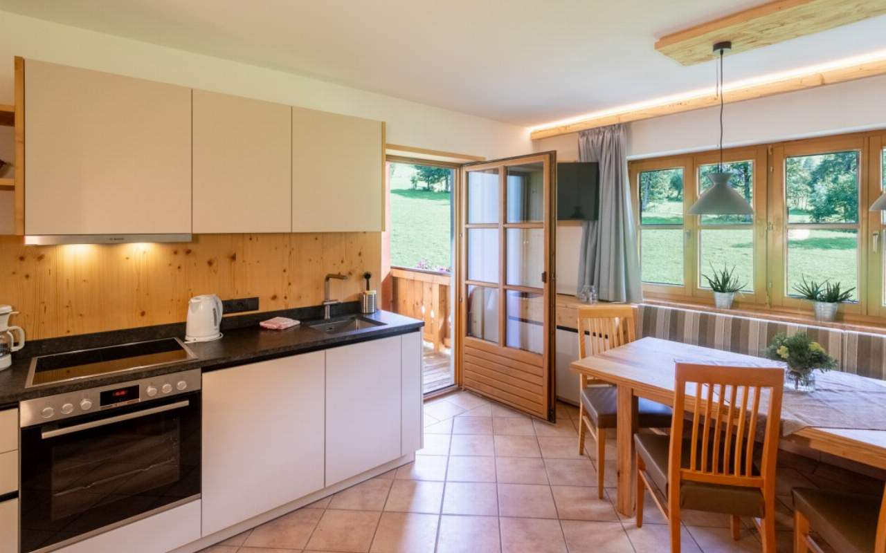 Die Ferienwohnungen mit Gesamtgrößen bis zu 80 m² begeistern mit herrlichem Blick auf die Salzburger Bergwelt. Die Wohnungen bietet Platz für 2 bis 7 Personen, Wohnküche mit Erker, komplett ausgestattete Küche mit Geschirrspüler, Wasserkocher und Filterkaffeemaschine, Backofen, Ceranfeld, Kühlschrank, sämtliche Küchenutensilien, Töpfe, Pfannen, Geschirrset,.. Kabel-TV, Radio, zwei getrennte Schlafzimmer, sonnigen Balkon, große Diele, Badezimmer mit Haarföhn und separates WC.