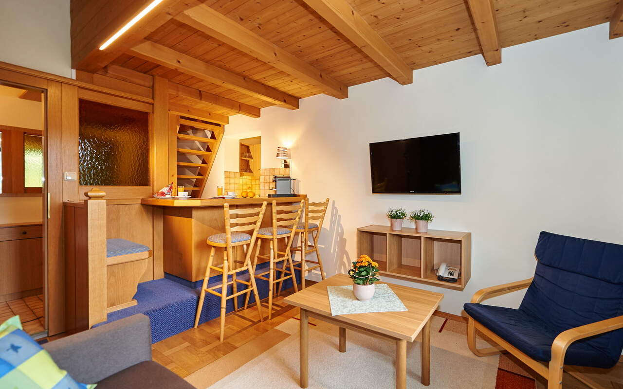 Das Apartmenthotel bietet großzügige und gemütliche teils mit kanadischem Ahorn möblierten Zimmer und Appartements 2 - 8 Personen. Zusätzlich steht eine große Penthouse Panorama Suite für bis zu 9 Personen zur Verfügung. Für die Kinder gibt es einen Spielplatz und ein Spielzimmer.