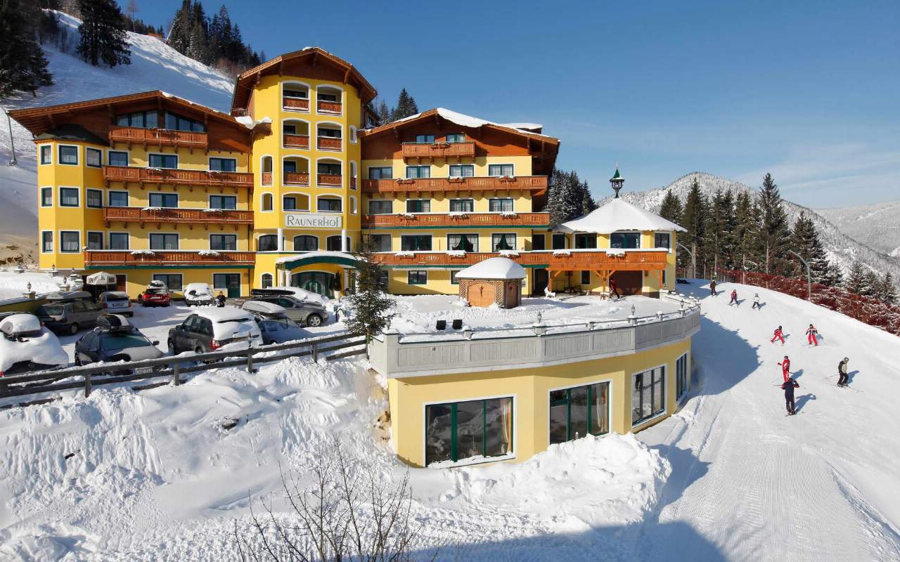 Das Hotel Raunerhof liegt mitten im 4-Berge-Skigebiet, direkt an der Skipiste der Reiteralm und bietet durch die idyllische Höhenlage einen wunderschönen Panoramablick auf die umliegenden Berge.