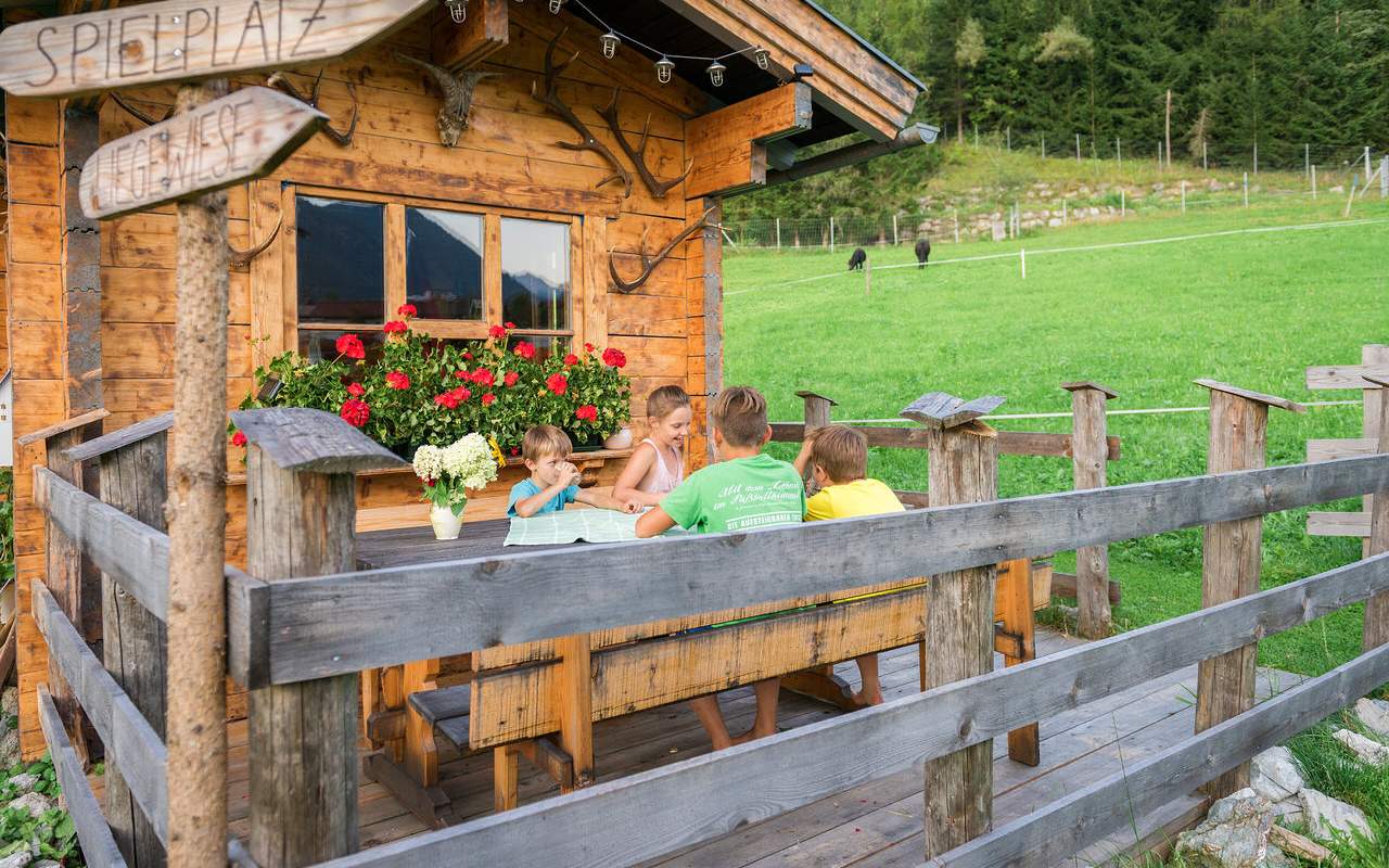 Die Kinder können ungestört und in verkehrsberuhigter Lage ihrem Bewegungsdrang nachgehen und die vielen lieben Tiere am Hof erleben. Es stehen ein Spielplatz, ein Spielzimmer und viele Geräte zur Verfügung, mit denen die Kinder sich betätigen können.