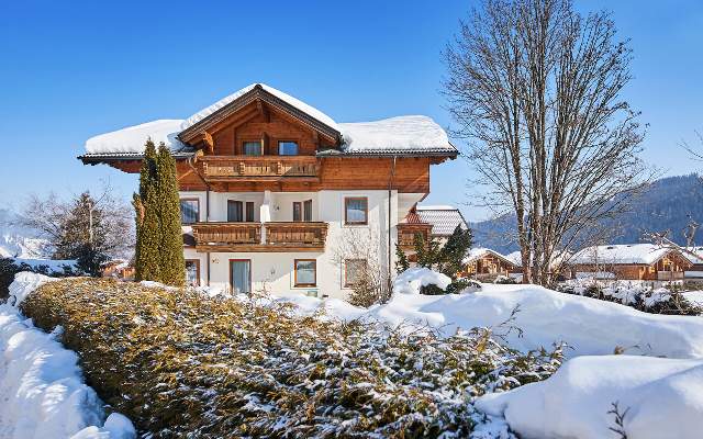 Das moderne Appartementehaus Die Bleibe schmucken Winterkleid