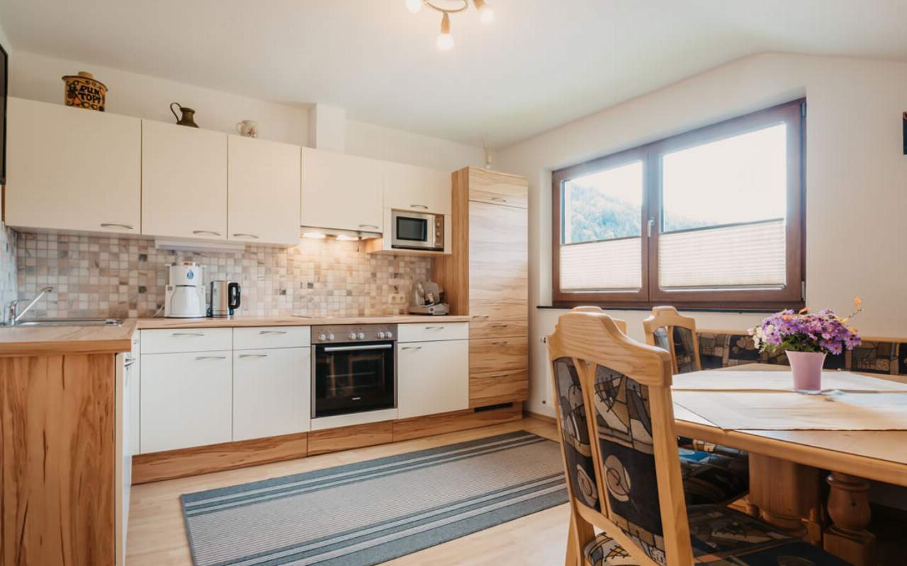 Im Obergeschoß dieses Privathauses befindet sich dieses gemütliche Appartement für bis zu 7 Personen. Das Appartement besteht aus 2 Schlafzimmern mit jeweils einem Doppelbett sowie Dusche/WC und TV. Die große Wohnküche bietet eine moderne Küchenzeile mit Herd, Kaffeemaschine, Backofen, Mikrowellenherd, Geschirrspüler und Kühlschrank mit Gefrierfach.