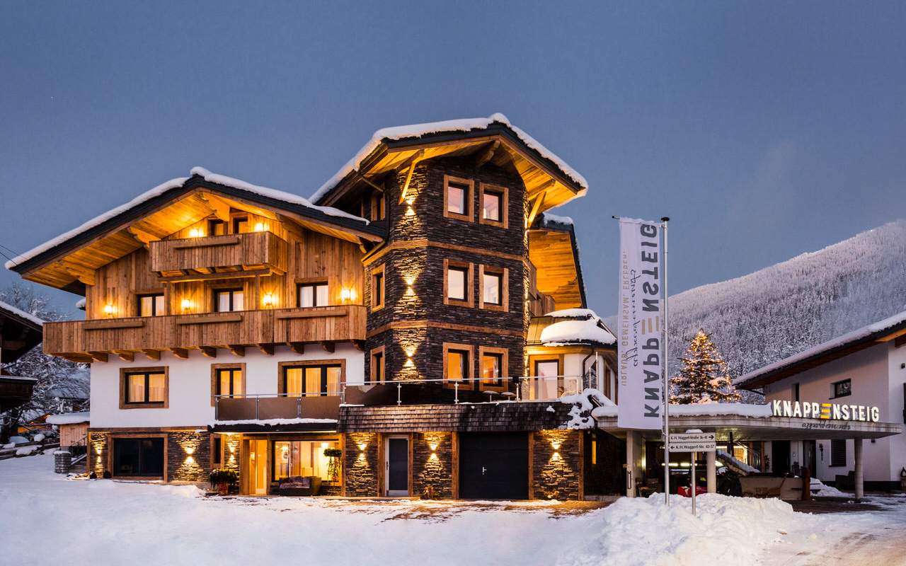 Das Chalet-Haus Knappensteig 1 hat erst vor kurzem eine komplette Renovierung erfahren und zeigt nun neu und modern gestaltet Wohnräume mit schönem Holz- und Steindesign.  Das Ferienhaus Knappensteig 2 ist ein stylisches Aparthotel mit gemütlicher und puristischer Einrichtung.