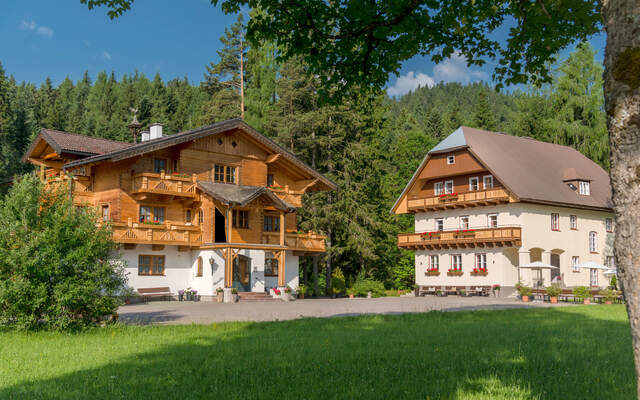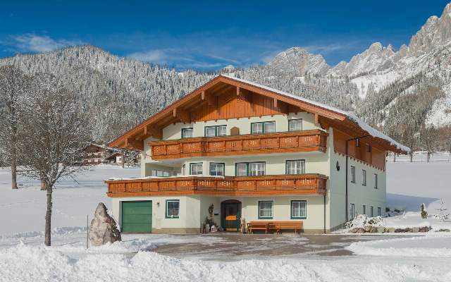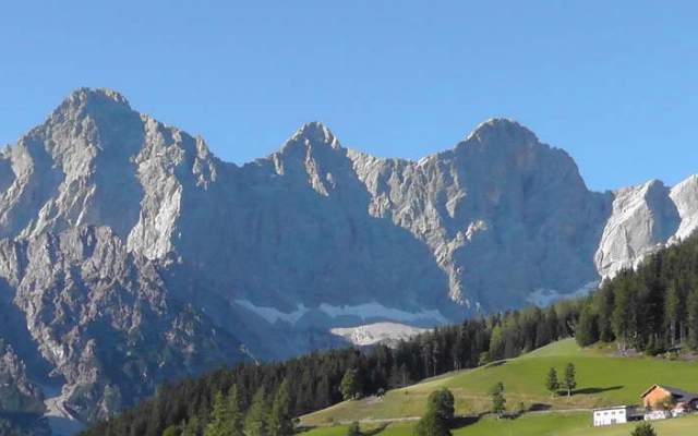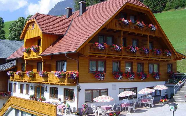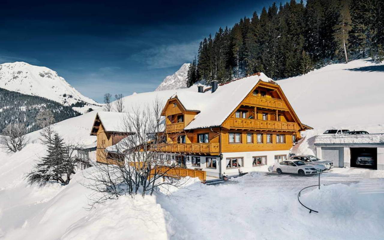 Die Lage der Pension Bartlbauer zeichnet sich durch seinen malerischen Ausblick auf die Berge der Dachstein Tauern Region aus.