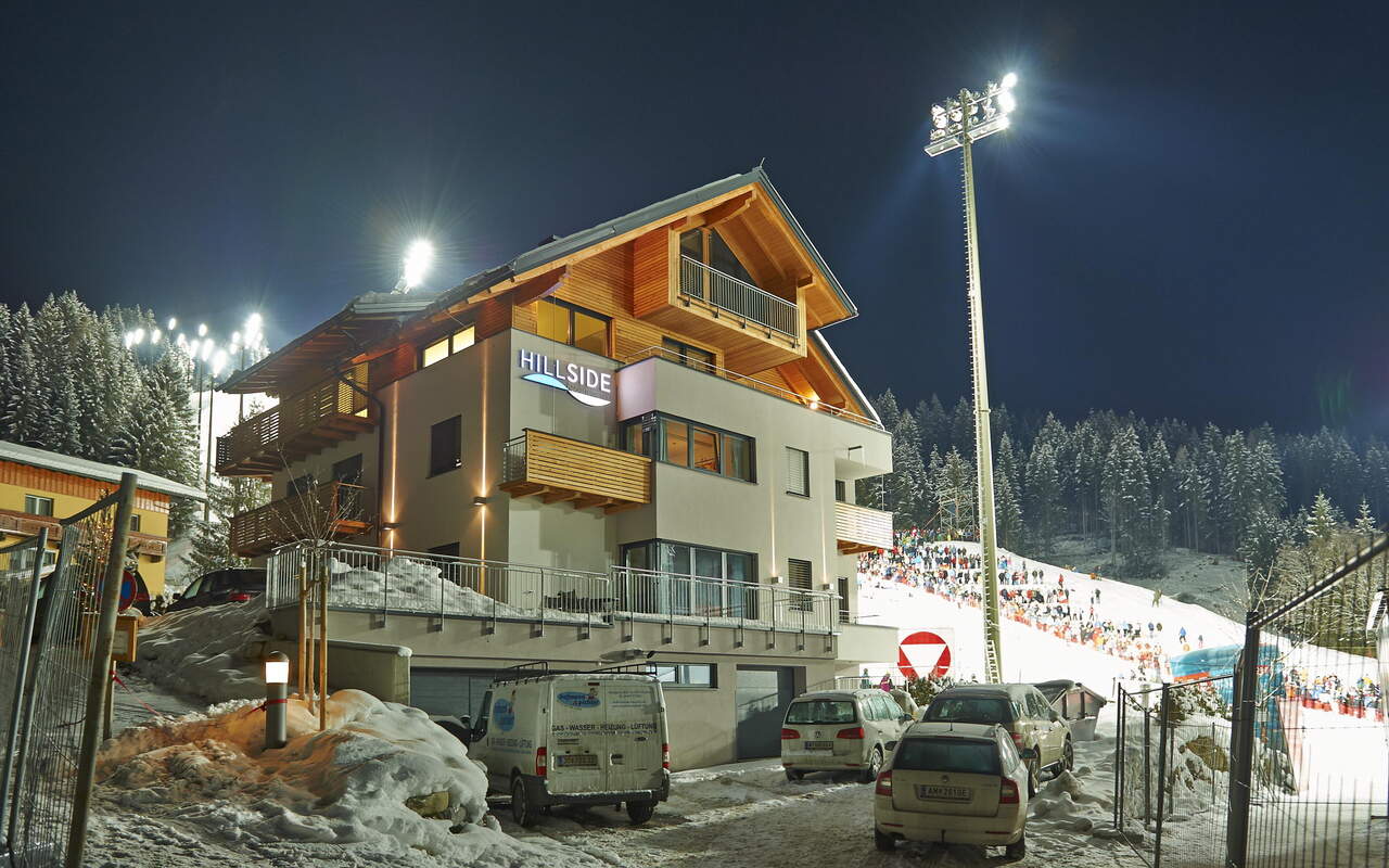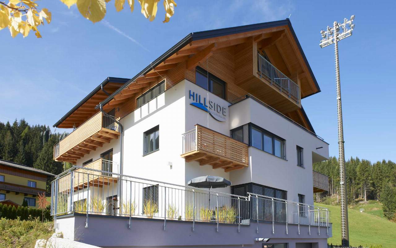 The Hillside flat house is located in the middle of the Ski amadé in Flachau on a sunny hill with a direct view of the World Cup downhill course.