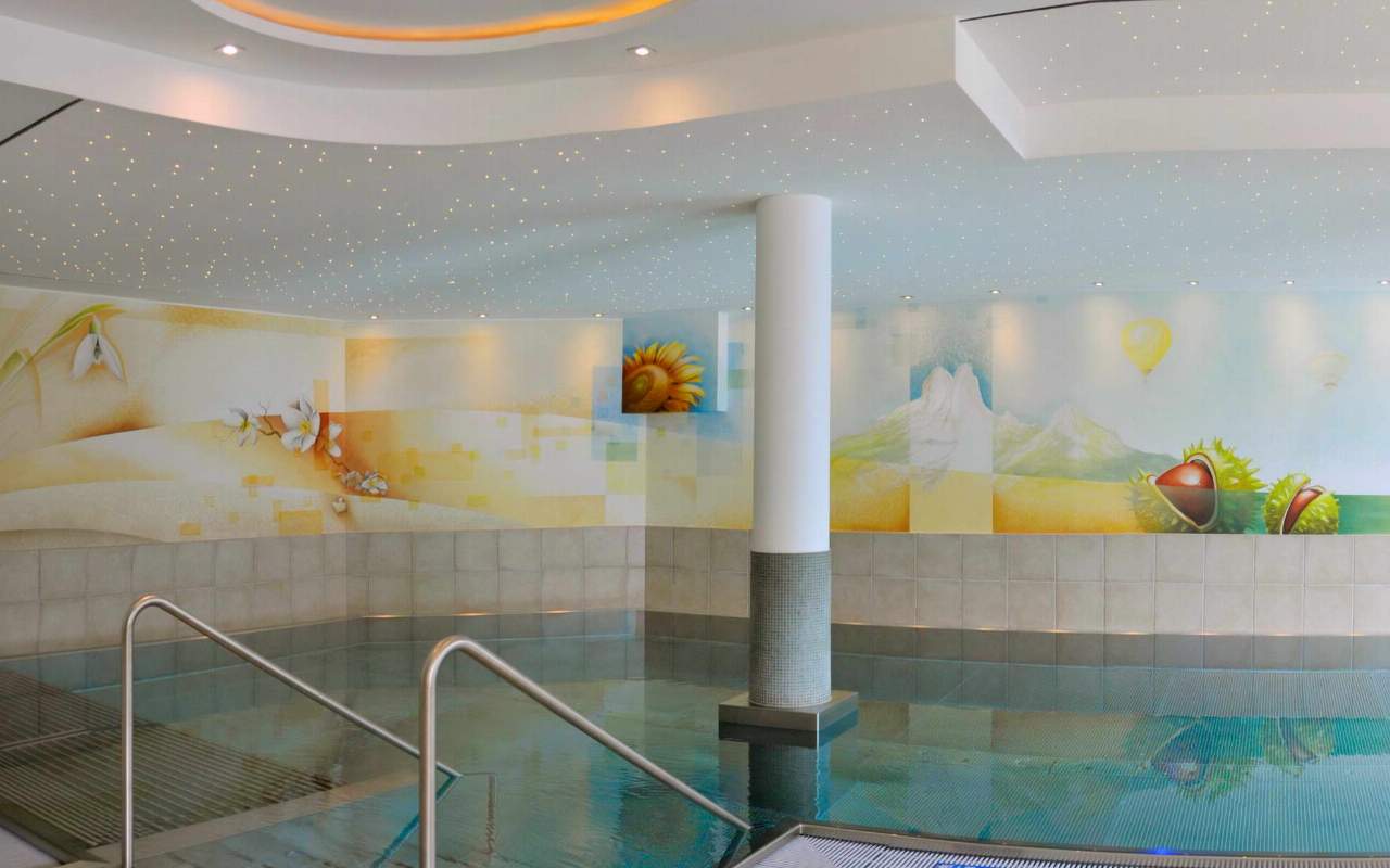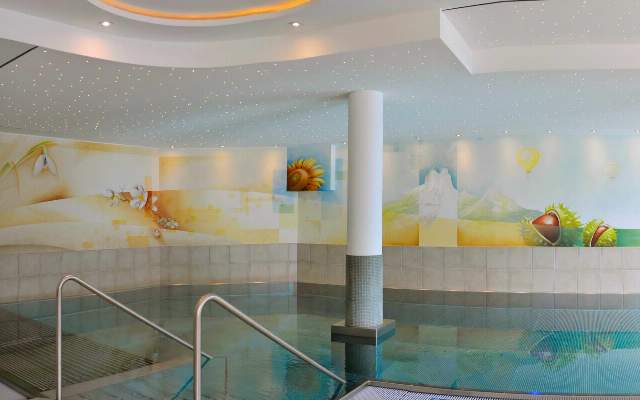 Der neu errichtete Wellnessbereiches umfasst ein Hallenbad, eine Saunalandschaft mit klassischer Sauna und finnischer Sauna, Aromadampfbad, Infrarotkabine und Solebad.