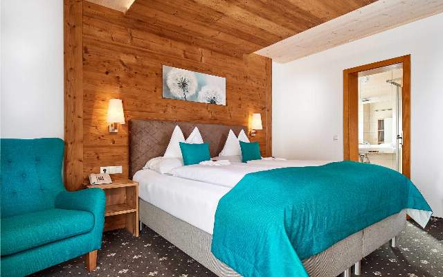 Alle Zimmer sind im modernen alpinen Stil mit viel Holz eingerichtet und bieten höchsten Komfort und beste Bettenqualität für einen erholsamen Schlaf.