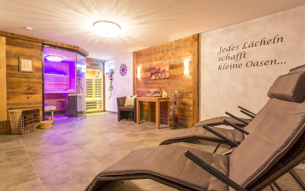 Für Kinder steht ein Spielraum und für die Erwachsenen ein Wellnessbereich mit Sauna und Infrarotkabine zum Entspannen zur Verfügung.
